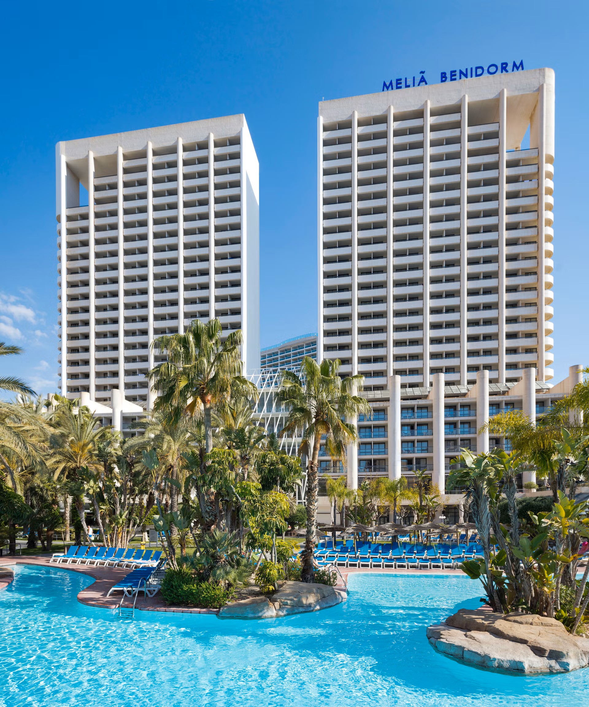 With its unmistakable skyline, Benidorm captivates both young and old with endless sunshine, stunning beaches, and a wide variety of leisure options. This hotel captures the lively, dynamic spirit of Spain’s most iconic holiday destination, rising majestically in front of a giant pool surrounded by lush gardens. Its superb facilities evoke a tropical paradise in the heart of the Costa Blanca.